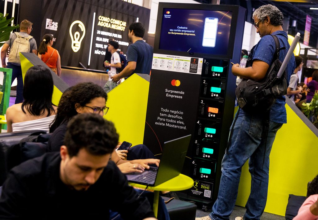 Já na arena, a presença da Mastercard foi marcada pela personalização, com elementos de cenografia e estações de carregamento para celulares, itens pensados para reforçar a identidade visual e o conforto dos participantes.