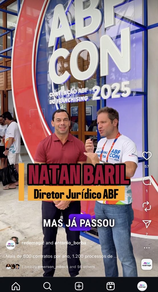 Natan destacou o protagonismo da diretoria jurídica da ABF na pauta da Reforma Tributária e o impacto direto sobre as redes de franquias. Também apresentou o papel da Baril Advogados como parceira de centenas de franqueadores em todo o Brasil.